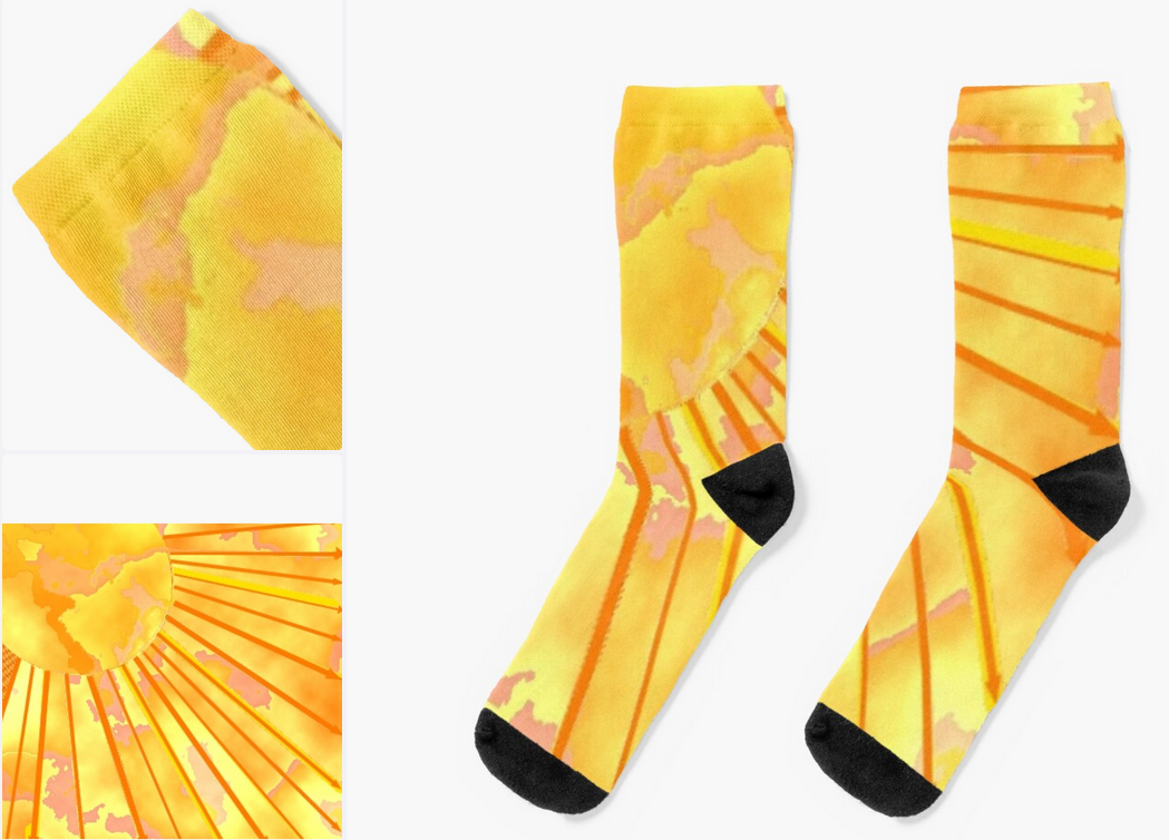 One of the things we particularly love about the designs is the way they work on some of the products. Especially cool is the asymetrical nature of the way some designs look. The socks, bags and leggings are particularly striking.